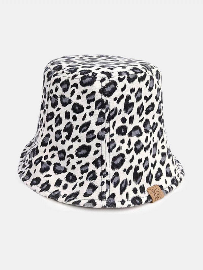 Unisex Polyester Bavlna Prekrytie Leopardí Vzor Písmeno Štítok All-match Sunshade Bucket Klobúk