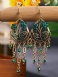 Vintage Bohémsky Tvar Dutého Kvetu So Strapcami Vykladanými Kamienkami Zliatinové Náušnice