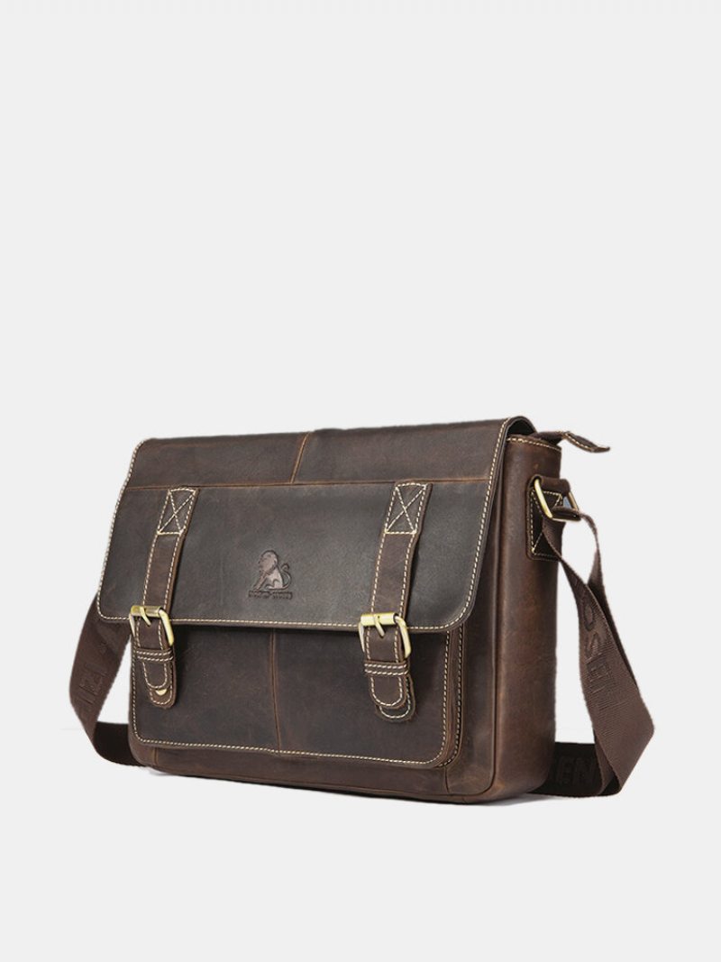 Vintage Business Crossbody Kabelka Z Pravej Kože Pre Mužov