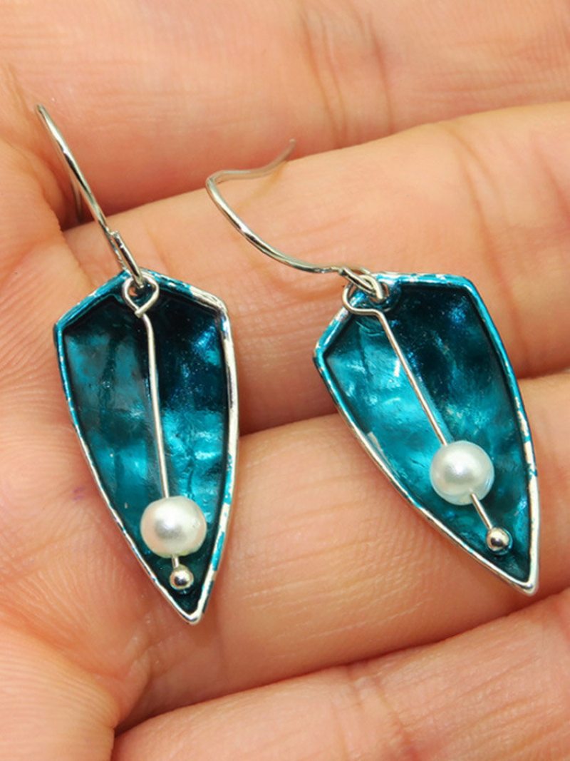 Vintage Green Painted Leaf Women Náušnice Perlový Prívesok Šperky Darček