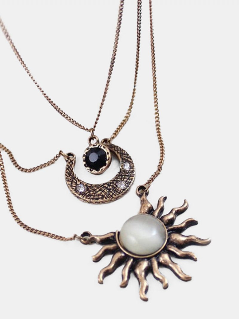 Vintage Prívesok V Tvare Sun Moon Viacvrstvový Zliatinový Náhrdelník