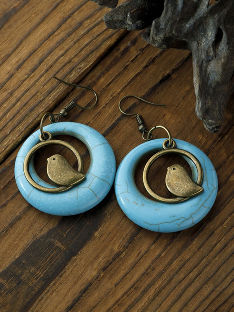 Vintage Tyrkysové Dámske Náušnice S Príveskom Bohémske Vtáčie Hniezdo