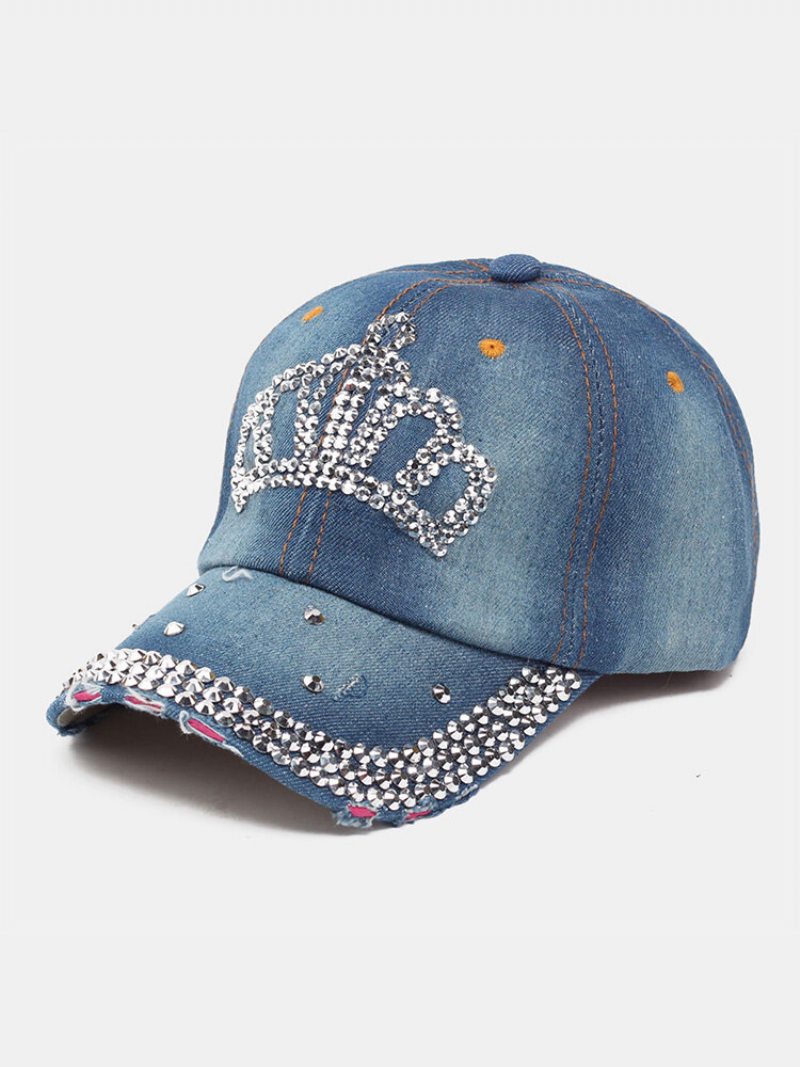 Ženy Džínsovina So Štrasom Zdobená Korunka Vzor S Rozbitou Dierkou Ležérne Slnečníky Baseballové Šiltovky